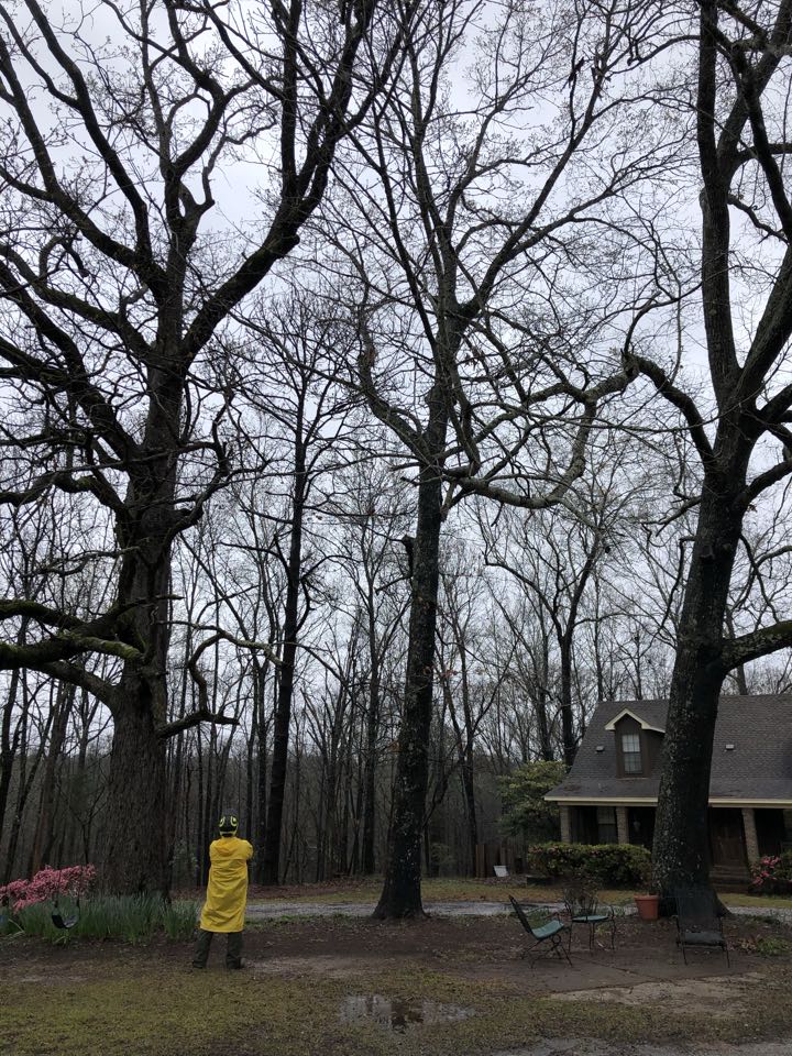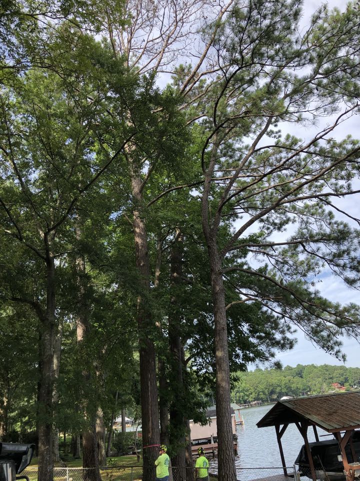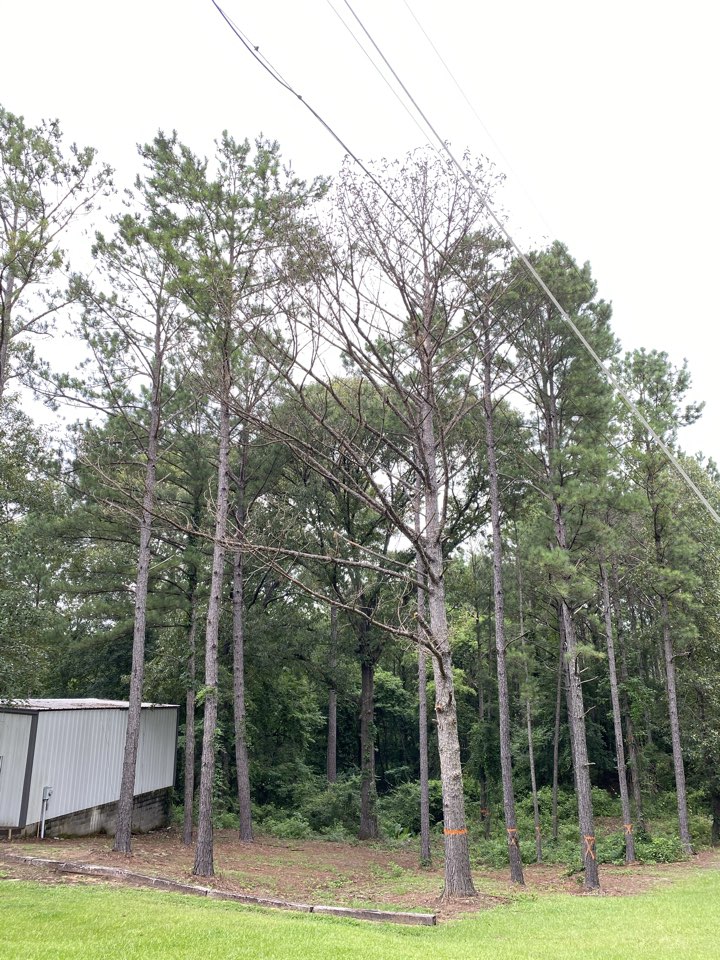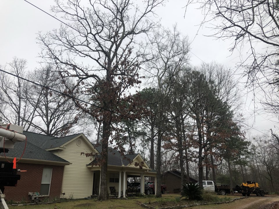 Removing multiple dead and green pines and grinding stumps. Also removing Water Oak in backyard to make way for pool construction.