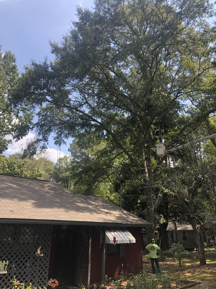 Removing low limb on Water Oak going over the house and cleaning up all debris