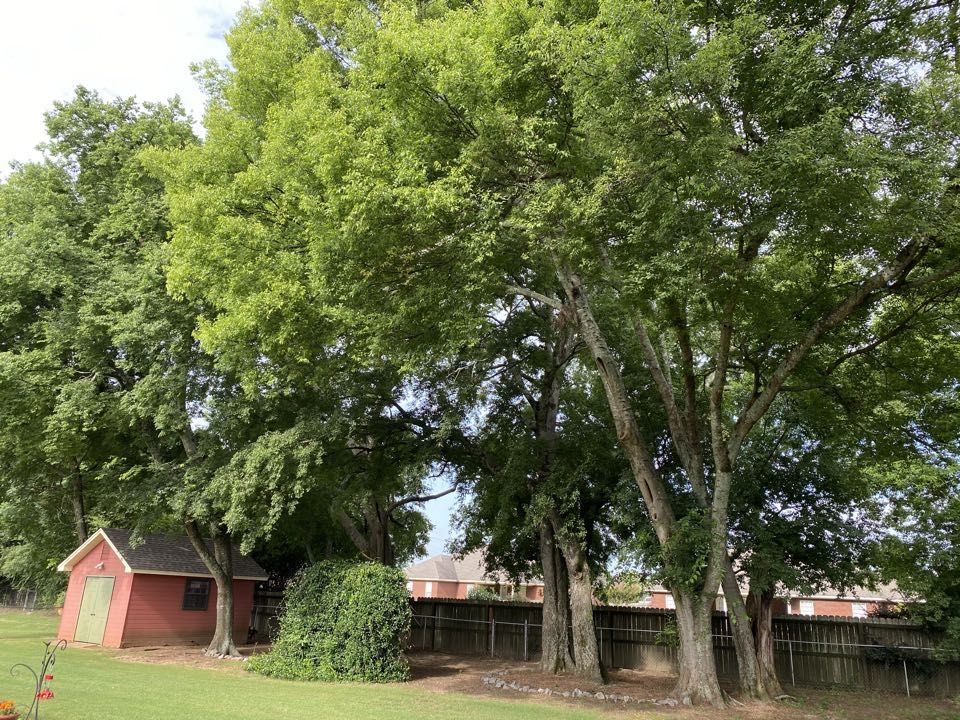 Removing multiple Hackberry trees in backyard and cleaning up all debris
