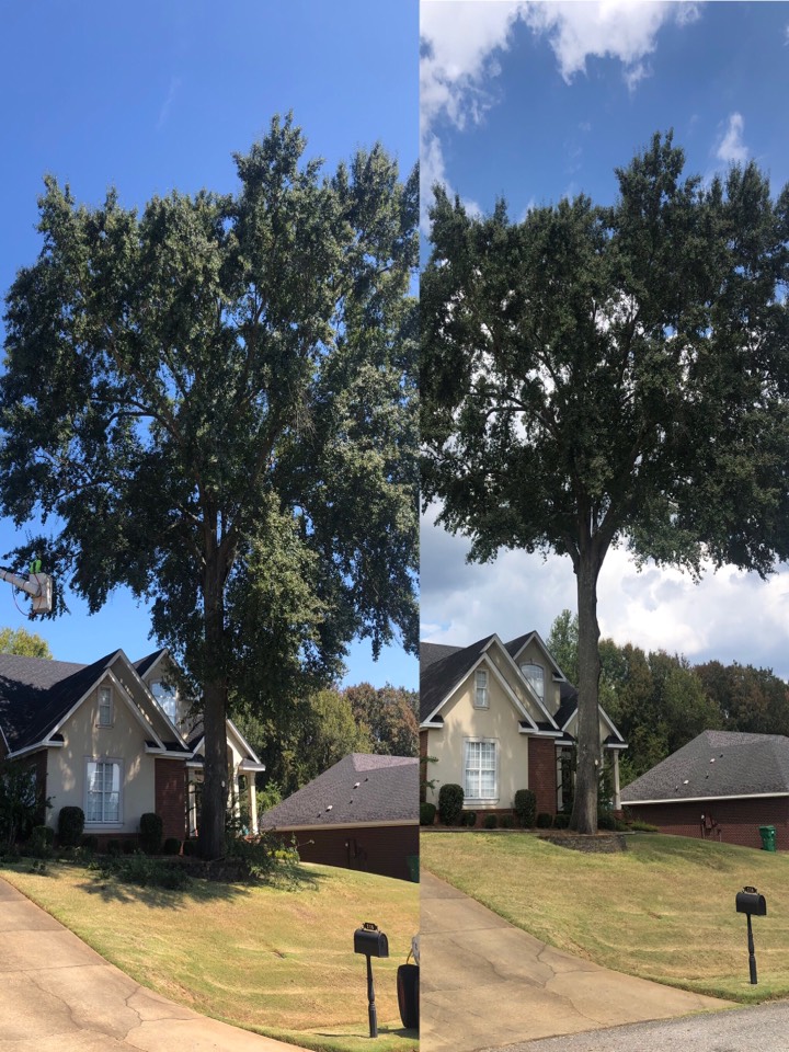 Raising canopy on Water Oak in front yard and removing all debris